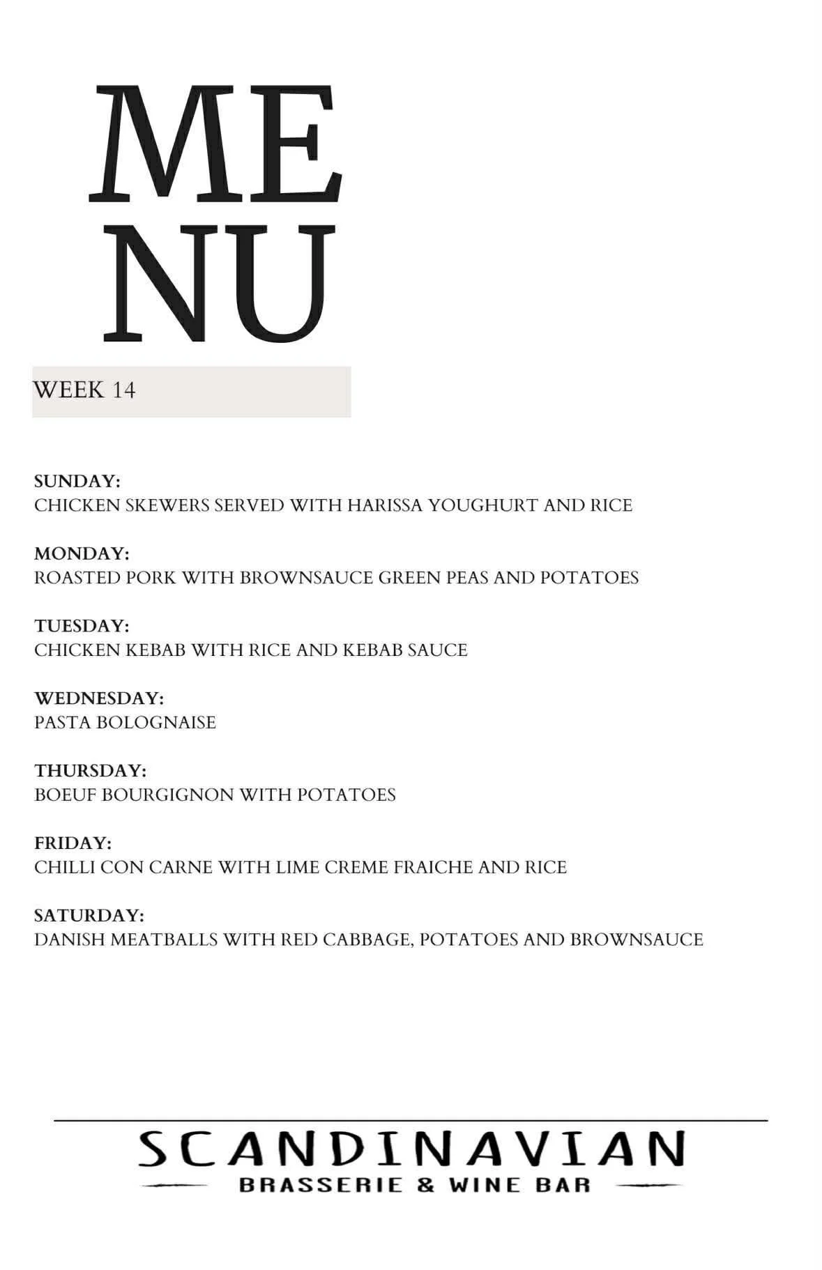 Morgenmad og aftensmad fra søndag-fredag. Vi samarbejder med Johns Scandinavia. Til morgenmad er der en stor morgenmadsbuffet, her får du lov til at fylde en take-away-boks som du kan tage med hjem.